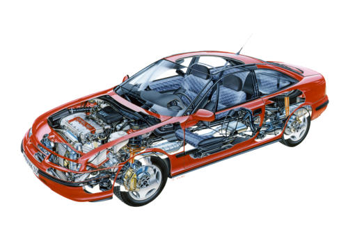 The Vauxhall Calibra was styled by the head of Vauxhall/Opel Design Europe, Wayne Cherry who was previously head of the Vauxhall Design Team at Luton. Ride and handling of the Calibra are very similar to the