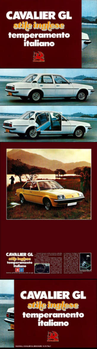 A Cavalier Mk1 Italian Brochure. Of note is the photo with the Yellow Cavalier Mk1 appears to be a reversal of the one in the 1975 launch brochure. Presumable this was a cost save as the reversal made the car appear left hand drive.
