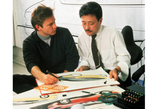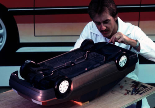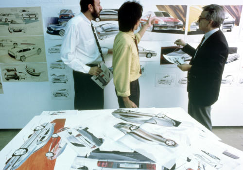 used the wallpaper to go over his remarks many times and memorise the whole script. Wayne Cherry talked about the design of the car and how each surface element makes a flowing transition into the next. He