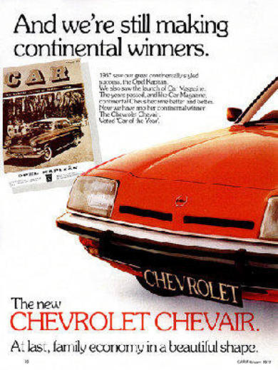 A press advertisement for the Chevrolet Chevair in February 1977 just after winning the Car of the Year