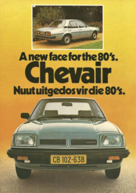 The U-Car Platform (Cavalier Mk1, Ascona B).Chevorlet Chevair 1976-1982.The U car in South Africa was first seen in November 1976 as the Chevrolet Chevair which replaced the larger engine versions of the HC