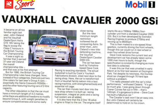 1995 Cleland and Cavalier Champions at last. James Thompson also joins Vauxhall Sport.
